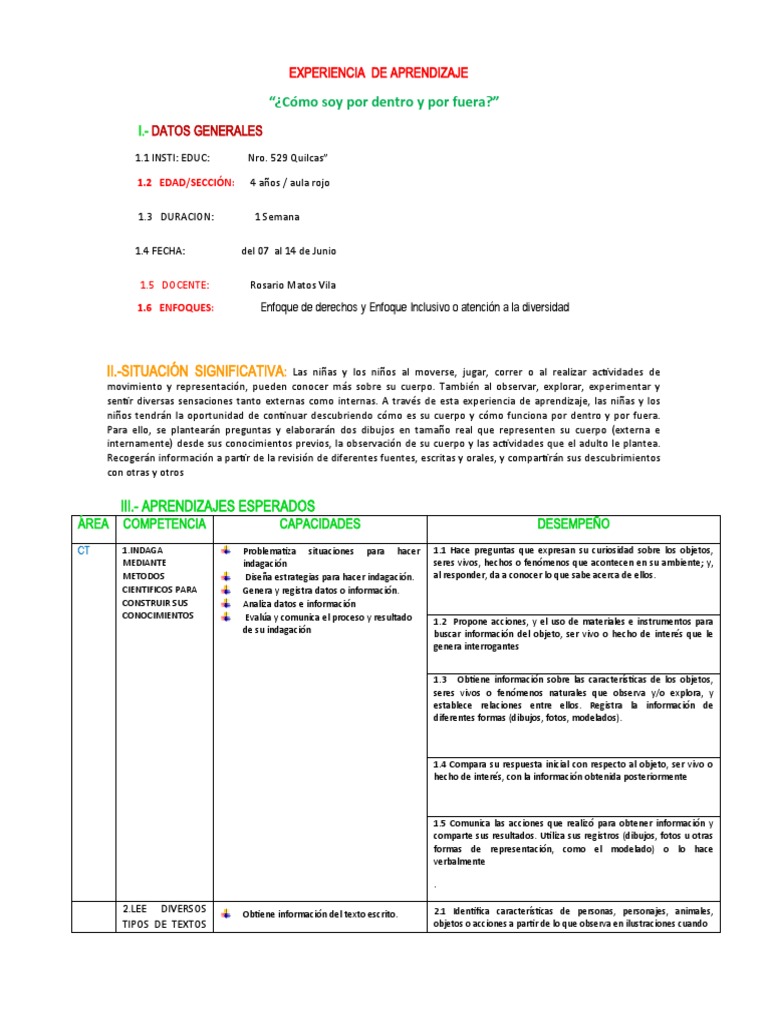 EXPERIENCIA DE APRENDIZAJE: “¿Cómo soy por dentro y por fuera?”