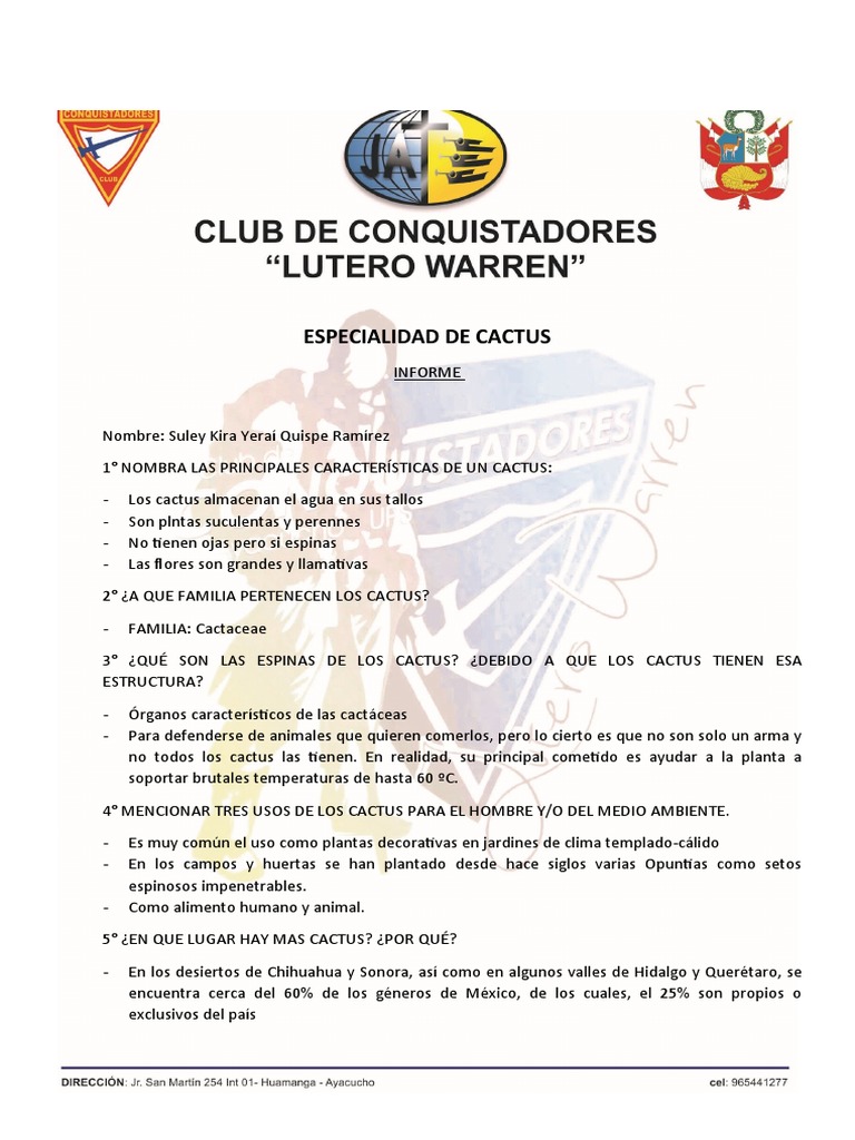 1° NOMBRA LAS PRINCIPALES CARACTERÍSTICAS DE UN CACTUS: