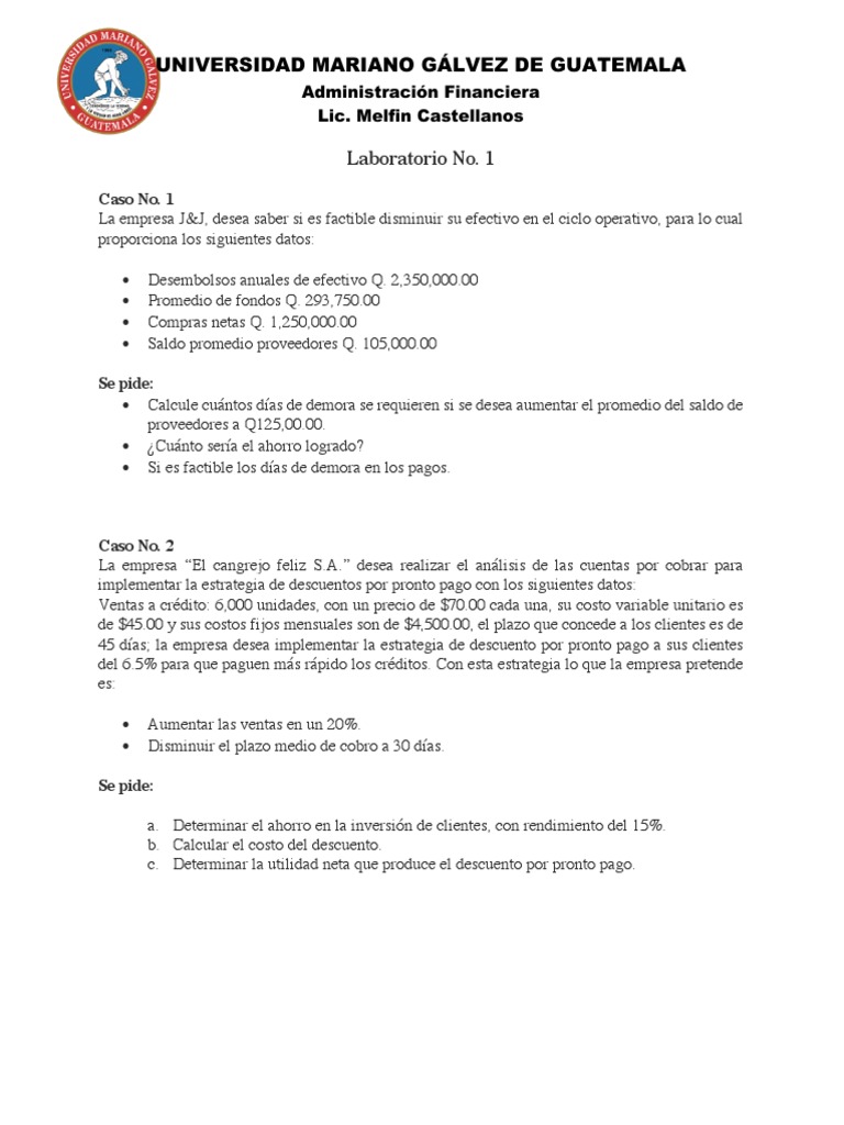 • Calcule cuántos días de demora se requieren si se desea aumentar el promedio del saldo de