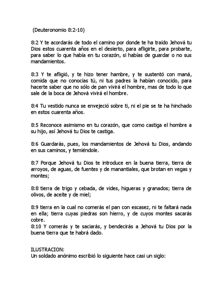 (Dt 8:4) Tu ropa no se gastó sobre ti, ni se hinchó tu pie durante estos