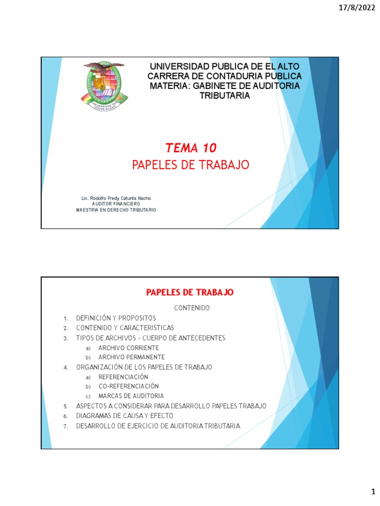 Algunos papeles de trabajo son elaborados por el propio Auditor, y se denominan Cédulas. Otros son