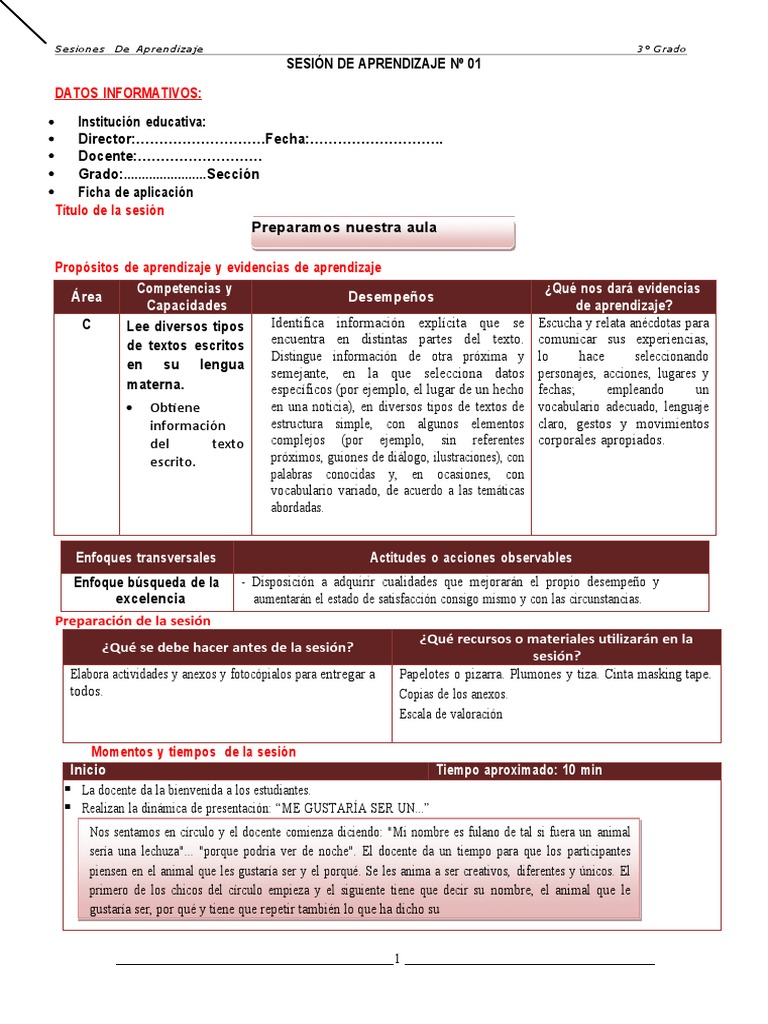 SESIÓN DE APRENDIZAJE Nº 01