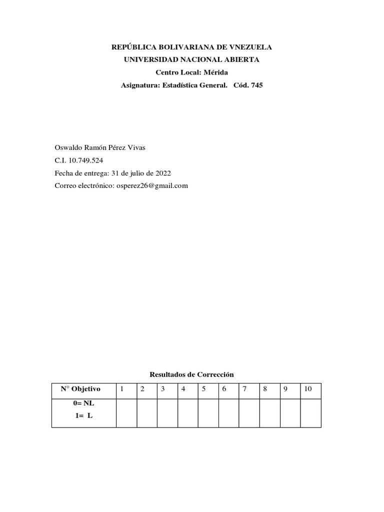 Asignatura: Estadística General. Cód. 745