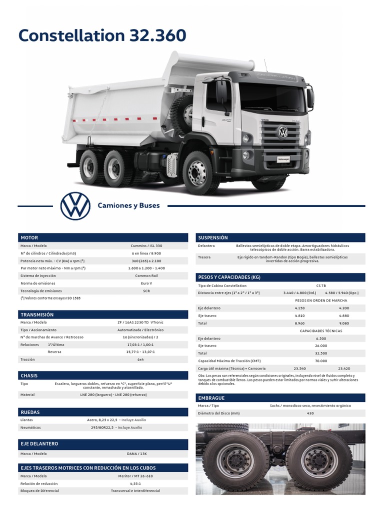 tanques de combustible llenos. Los pesos pueden estar limitados por normas viales y sufrir alteraciones