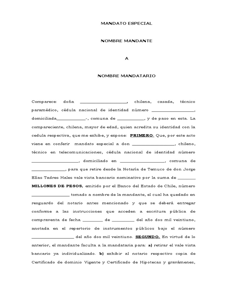 viene en conferir mandato especial a don ___________________, chileno,