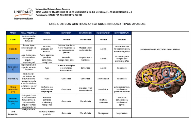 TABLA DE LOS CENTROS AFECTADOS EN LOS 8 TIPOS AFASIAS