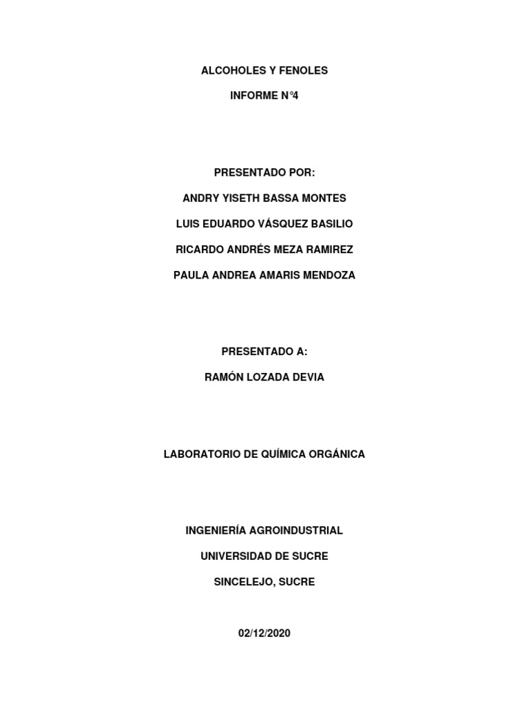 verificarán y comprobarán las propiedades físicas y químicas de los alcoholes y fenoles,