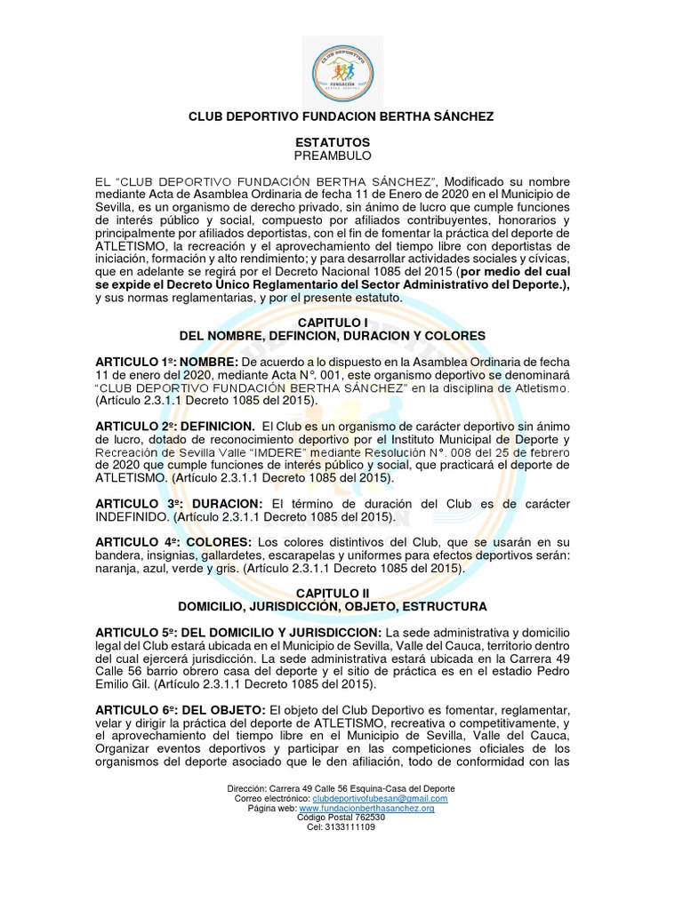 legal del Club estará ubicada en el Municipio de Sevilla, Valle del Cauca, territorio dentro