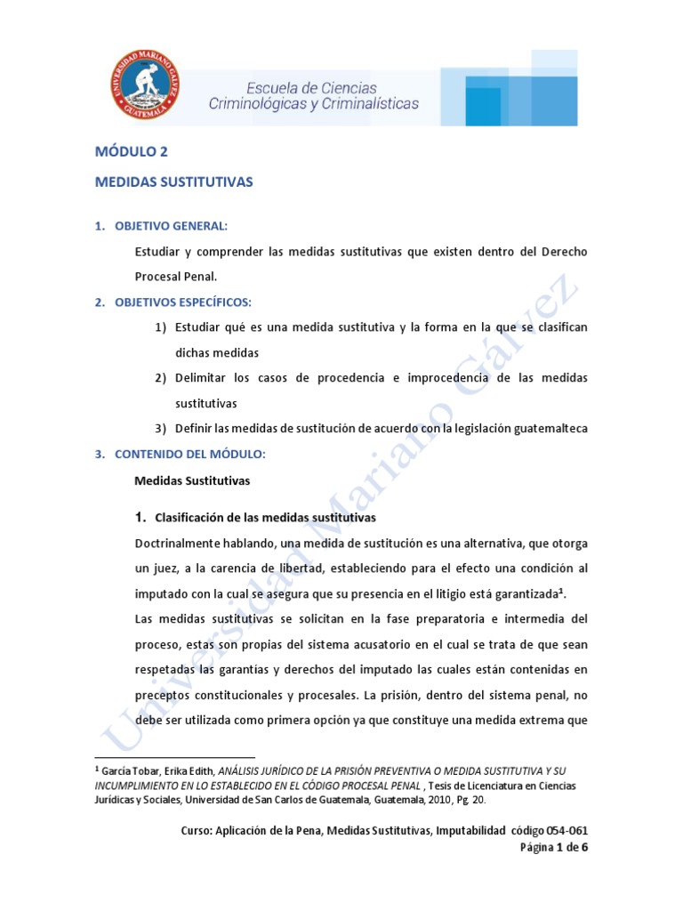 3) Definir las medidas de sustitución de acuerdo con la legislación guatemalteca