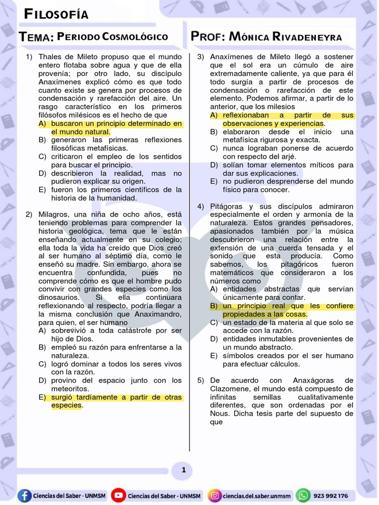 1) Anaxímenes de Mileto propuso como físico, mis intereses, mi círculo de amigos