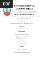La cesacin de la comunidad, la constitucin de esta persona jurdica y la transmisin de los derechos reales aqu mencionados podr ser hecha en forma gratuita por el Instituto de la Propiedad. Art.144; Cuando existan bienes inmuebles legalmente posedos en comunidad de bienes o pro indivisos en los que existan cesiones de derechos inscritos en registros pblicos que se encuentren acotados o delimitados de forma que permitan identicar la individualidad fsica de cada uno de esos derechos o cuotas de los consignatarios, el Instituto de la Propiedad (IP) proceder a individualizarlo y sobre esa base a emitir gratuitamente un nuevo ttulo inscrito. Este mismo procedimiento ser aplicable tambin a todos los casos de comunidad pro indivisa de bienes inmuebles que se originen de la venta de derechos hereditarios sobre un bien inmueble posedo en la comunidad. Art.145; antes de proceder a la particin, se decidir por la justicia ordinaria toda disputa sobre los derechos sujetos a particin. No obstante, estas disputas tambin podrn decidirse mediante proceso de mediacin, conciliacin o arbitraje. Cuando as lo autoricen las partes, el partidor que se nombre tambin podr ponerle n a estas disputas. Esos artculos maniestan el hostigamiento, por parte de los legisladores, hacia el derecho de poseer bienes en comunin (derecho que presenta marcada analoga con el derecho colectivo de poseer las tierras ancestrales) como en el caso de todas las comunidades indgenas que poseen tierra colectiva. Solo se admite la posibilidad que cuando no puedan cesar la comunidad debern reunirse para constituir una persona jurdica con o sin nes de lucro a la que debern transmitir sus derechos de propiedad. Esta actitud que el Gobierno expresa a travs de la Ley, representa un retroceso para el reconocimiento de los derechos colectivos ancestrales a la tierra. Al respecto se considera que incluso la Ley de Reforma Agraria - enemiga histrica de los derechos indgenas - prevea una excepcin al mencionado rgimen aplicable a los bienes en comunidad a favor de lo pueblos autctonos. En efecto la Ley de Reforma Agraria prevea una excepcin, con respecto a los pueblos autctonos, a las disposiciones previstas en el artculo 27 que eran anlogas a las mencionadas en la Ley de Propiedad El tercer prrafo del artculo 27 de la Ley de Reforma agraria prev que: lo
