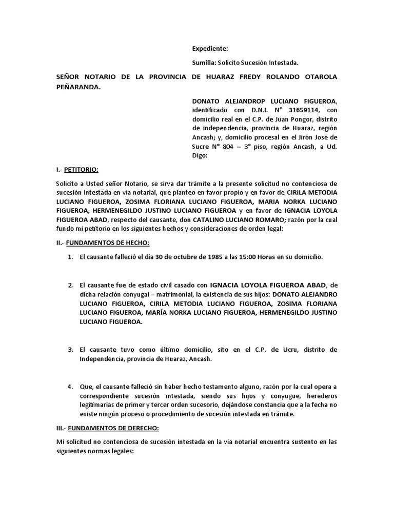 Sumilla: Solicito Sucesión Intestada.
