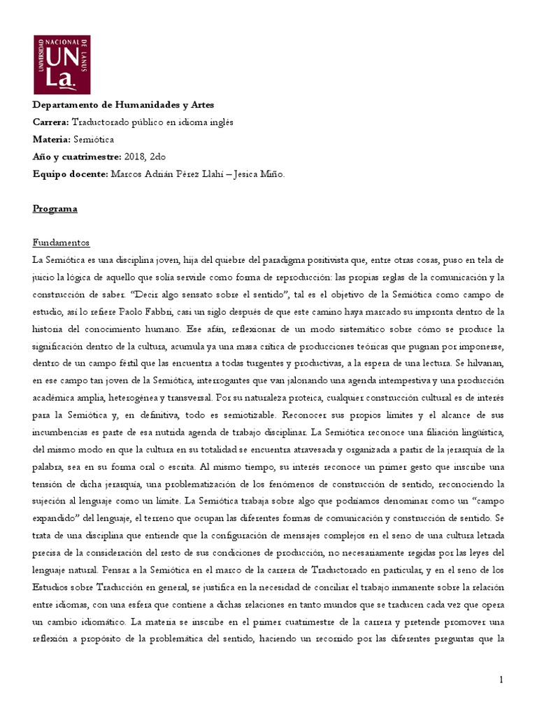 lenguaje natural. Pensar a la Semiótica en el marco de la carrera de Traductorado en particular, y en el seno de los
