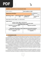 un cambio idiomático. La materia se inscribe en el primer cuatrimestre de la carrera y pretende promover una
