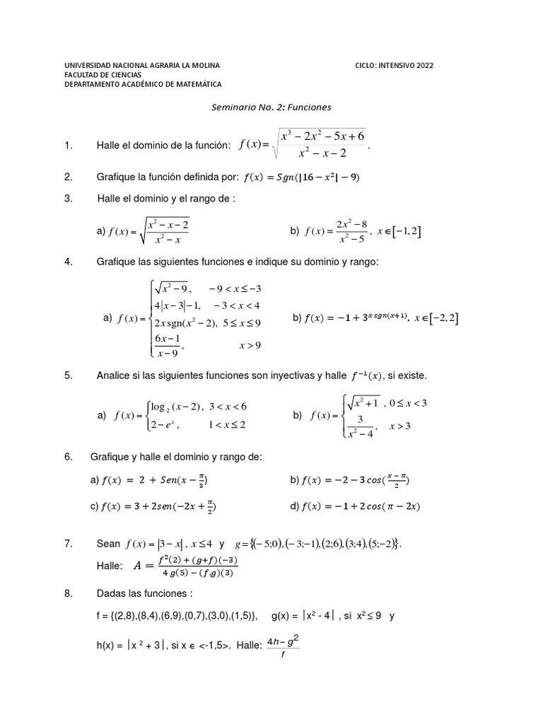 Seminario No. 2: Funciones