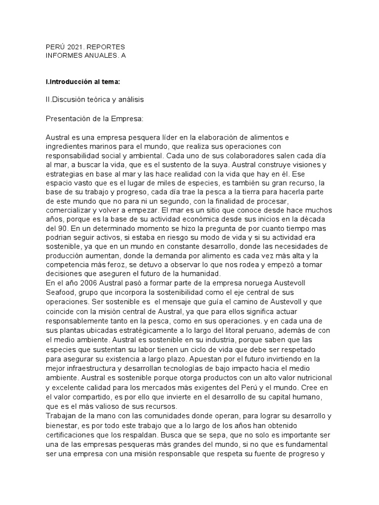 análisis realizado a la compañía Austral S.A.A. como caso de empresa socialmente