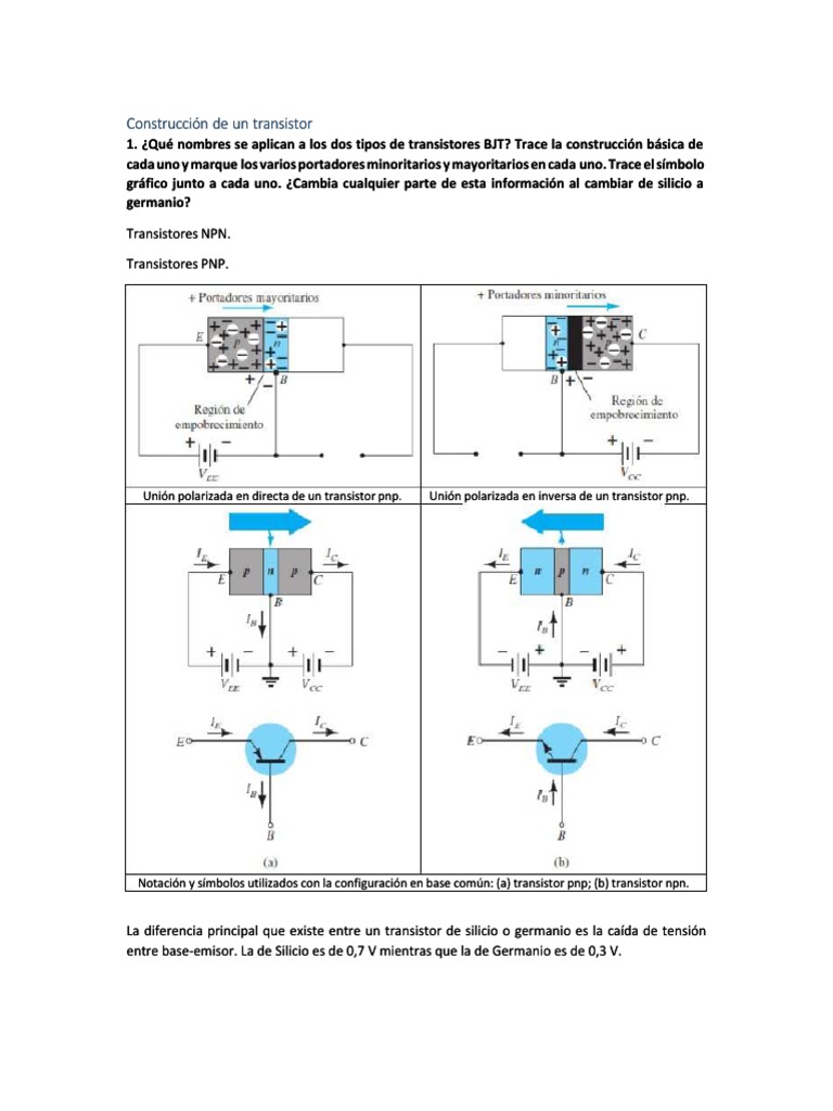entre base-emisor. La de Silicio es de 0,7 V mientras que la de Germanio es de 0,3 V.