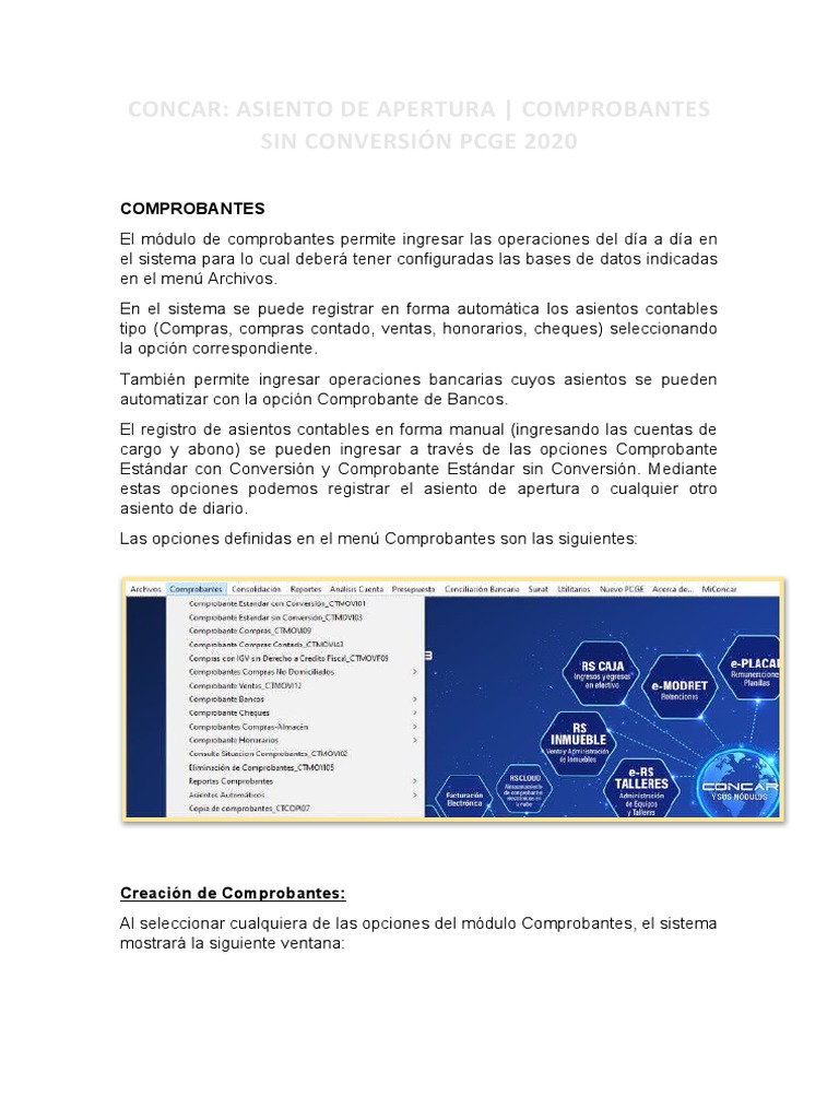 CONCAR: ASIENTO DE APERTURA | COMPROBANTES