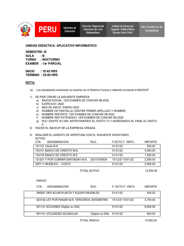 e) NOMBRE REPORTE: 1ER EXAMEN DE CONCAR 3B-2022