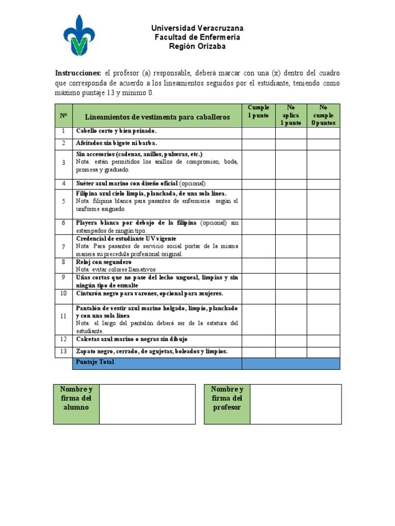 N° Lineamientos de vestimenta para caballeros 1 punto aplica cumple
