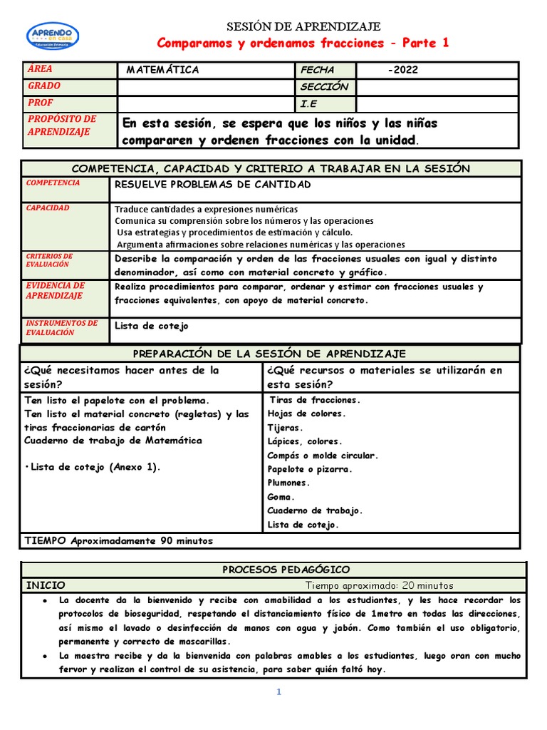 Comunicamos el propósito de la sesión a trabajar : hoy compararán y ordenarán fracciones