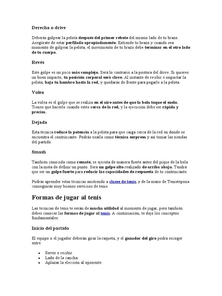 debes conocer las formas de jugar al tenis. A continuación, te dejo los conceptos