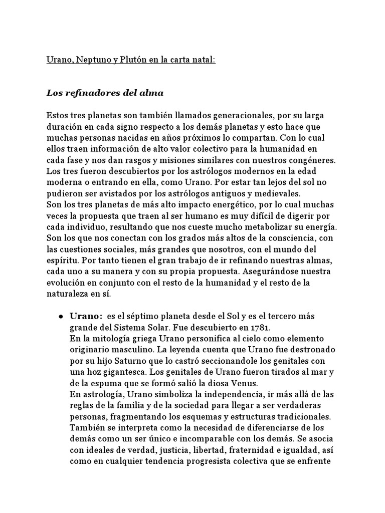 Urano, Neptuno y Plutón en la carta natal: