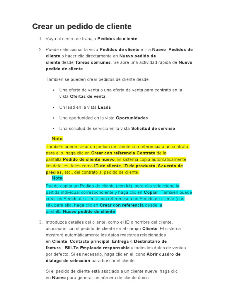 crear un Pedido de cliente con referencia a un Pedido de cliente (con