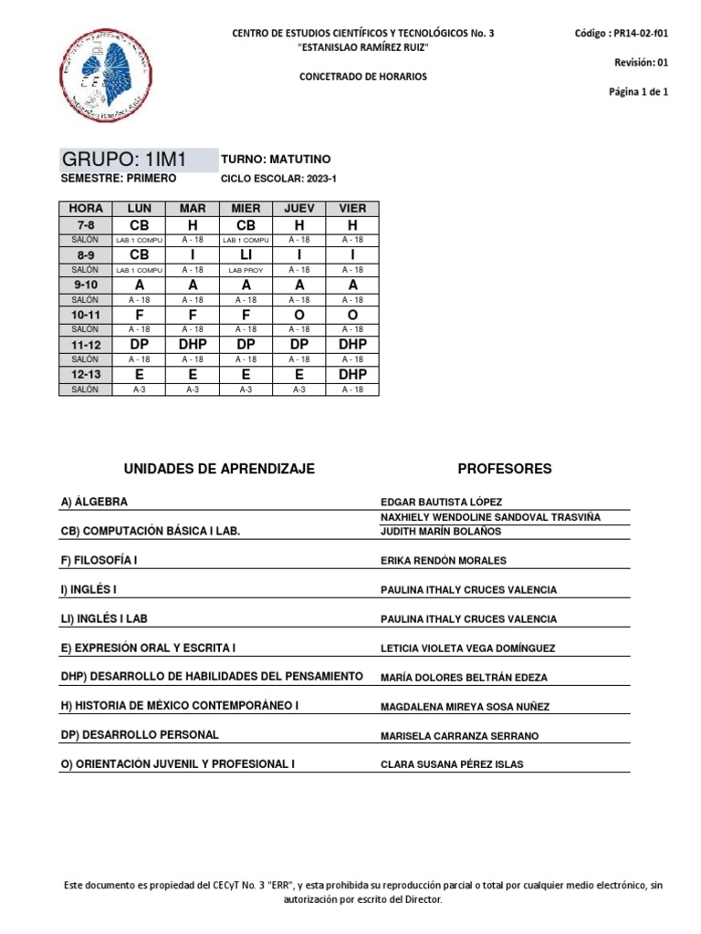 Horarios CECyT No. 3 2023-1