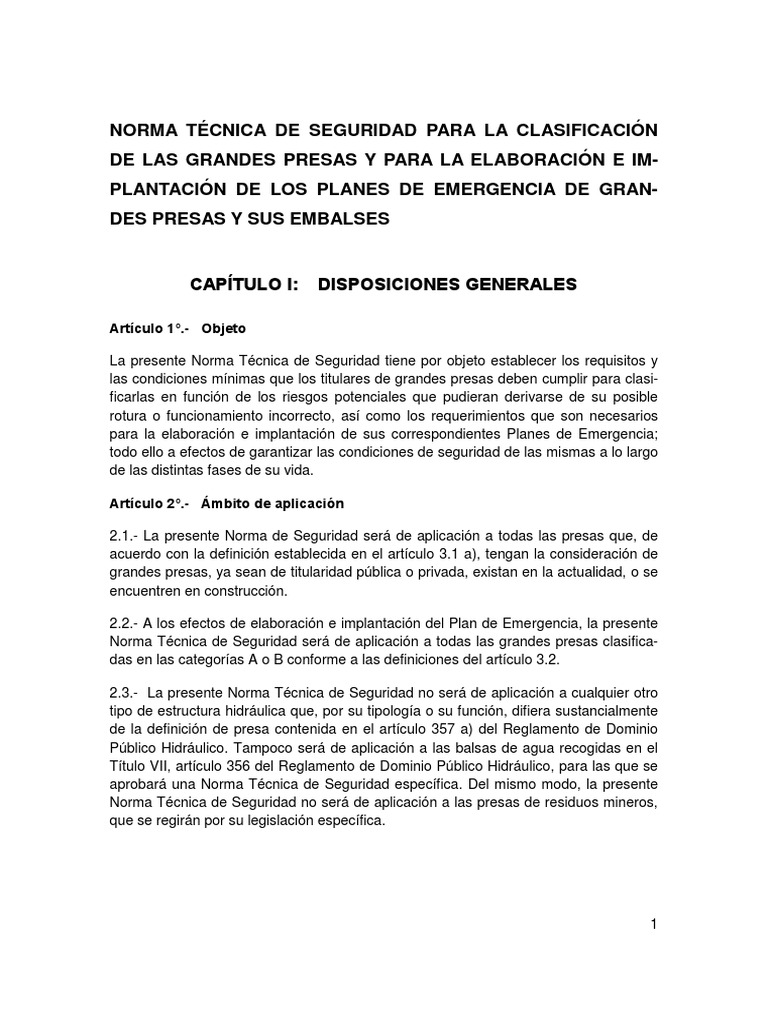 de las Normas Técnicas de Seguridad de Grandes Presas y sus Embalses.