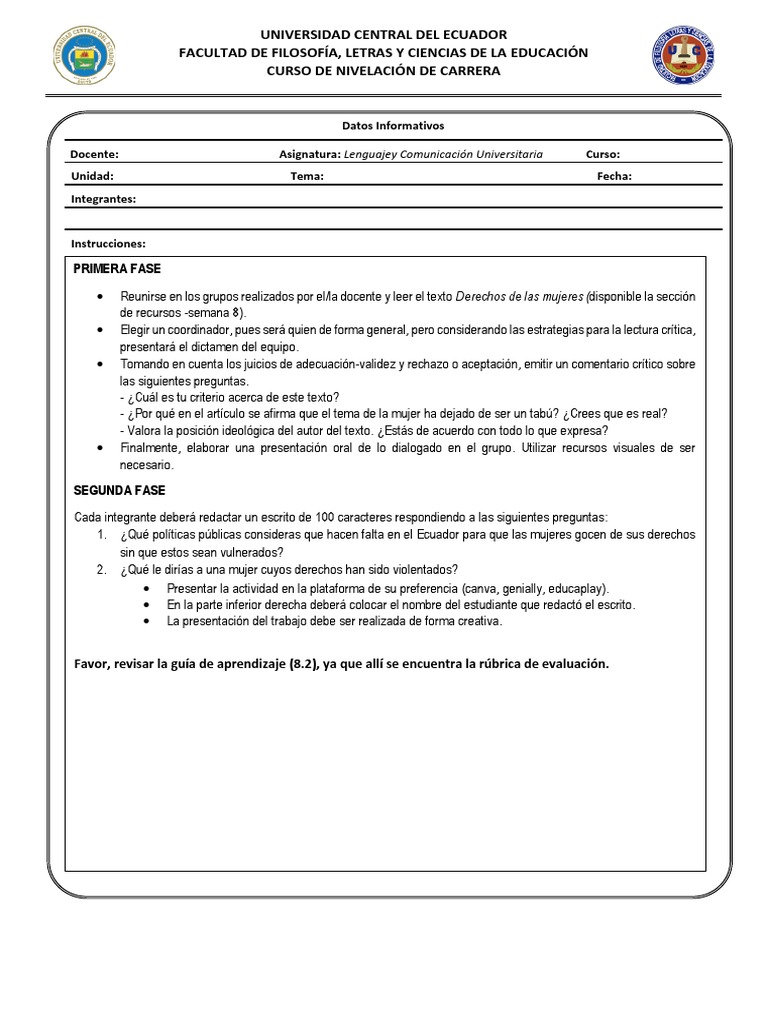 • Reunirse en los grupos realizados por el/la docente y leer el texto Derechos de las mujeres (disponible la sección
