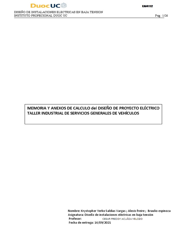 Asignatura: Diseño de instalaciones eléctricas en baja tensión