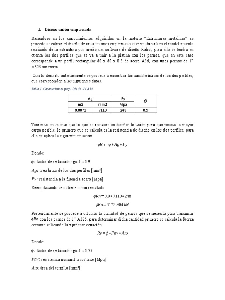 ϕRn con los pernos de 1” A325, para determinar dicha cantidad primero se calcula la fuerza