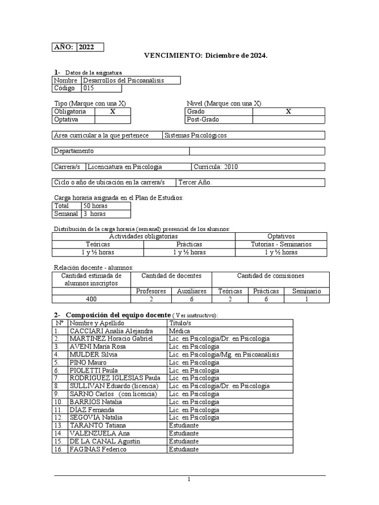 Carrera/s Licenciatura en Psicología Currícula: 2010