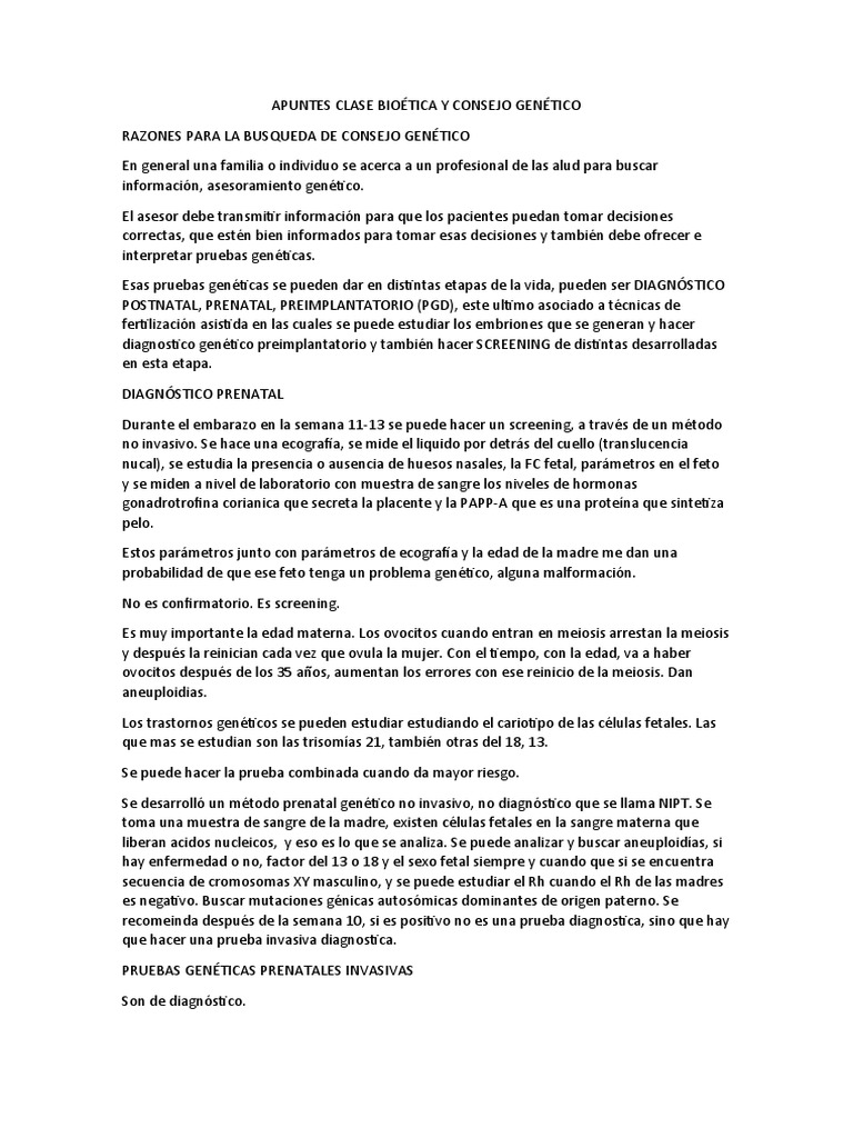 APUNTES CLASE BIOÉTICA Y CONSEJO GENÉTICO