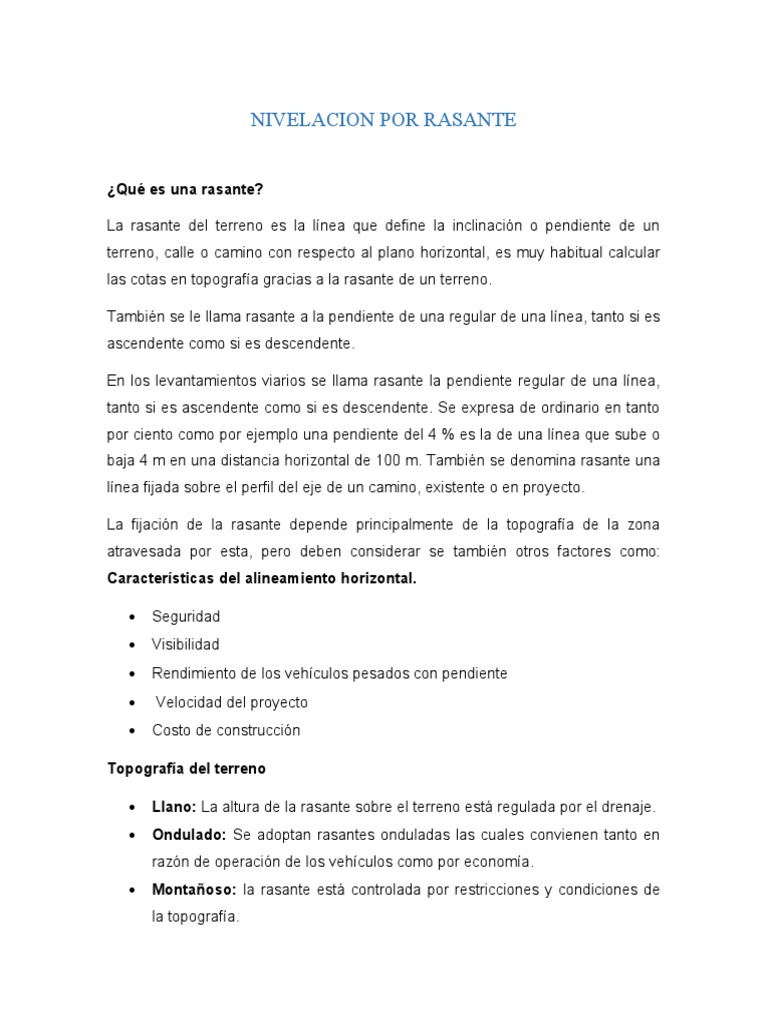 La operación de nivelar por rasantes es análoga a la nivelación de perfiles