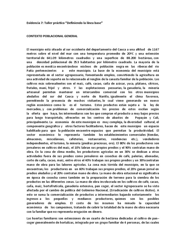 Evidencia 7: Taller práctico “Definiendo la línea base”