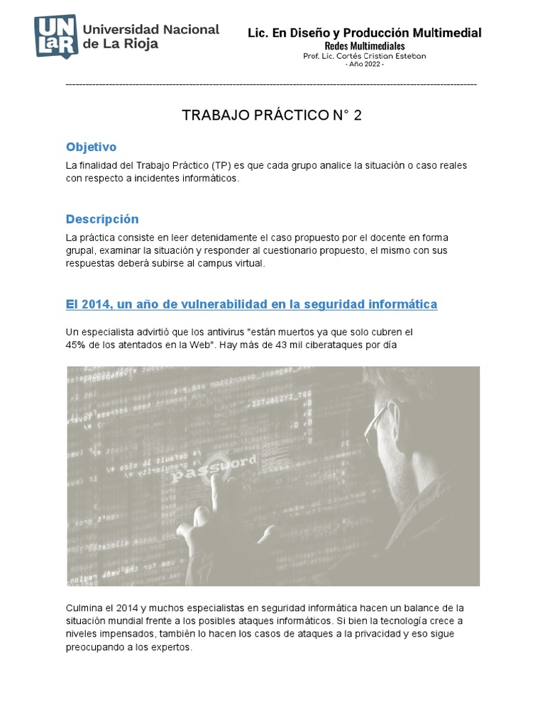 La finalidad del Trabajo Práctico (TP) es que cada grupo analice la situación o caso reales