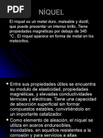 importantes aleaciones de Níquel son la Plata alemana, el Invar, el Monel, el Nicromo y el