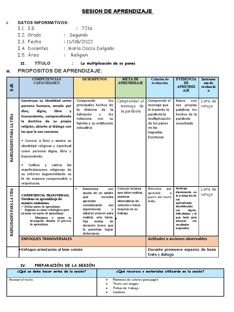 II. MOMENTOS DE LA SESIÓN DE APRENDIZAJE