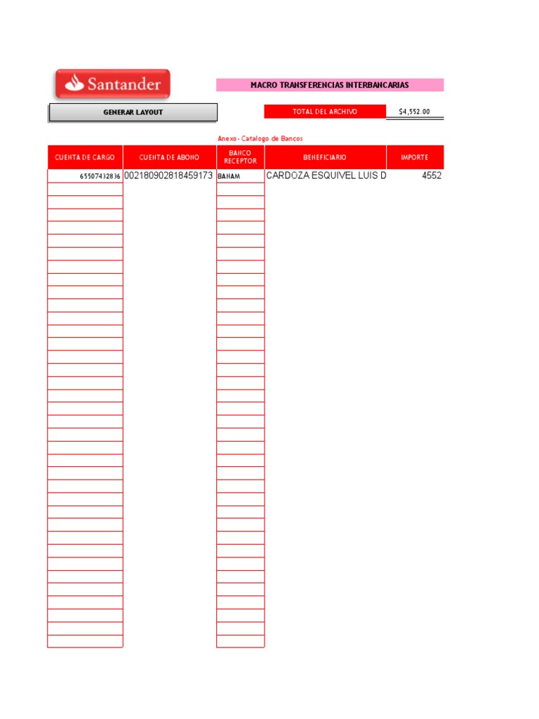 GENERAR LAYOUT TOTAL DEL ARCHIVO $4,552.00