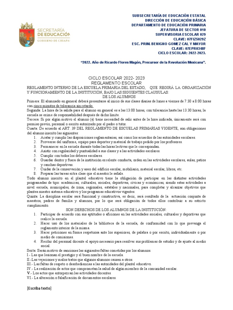 REGLAMENTO ESCOLAR