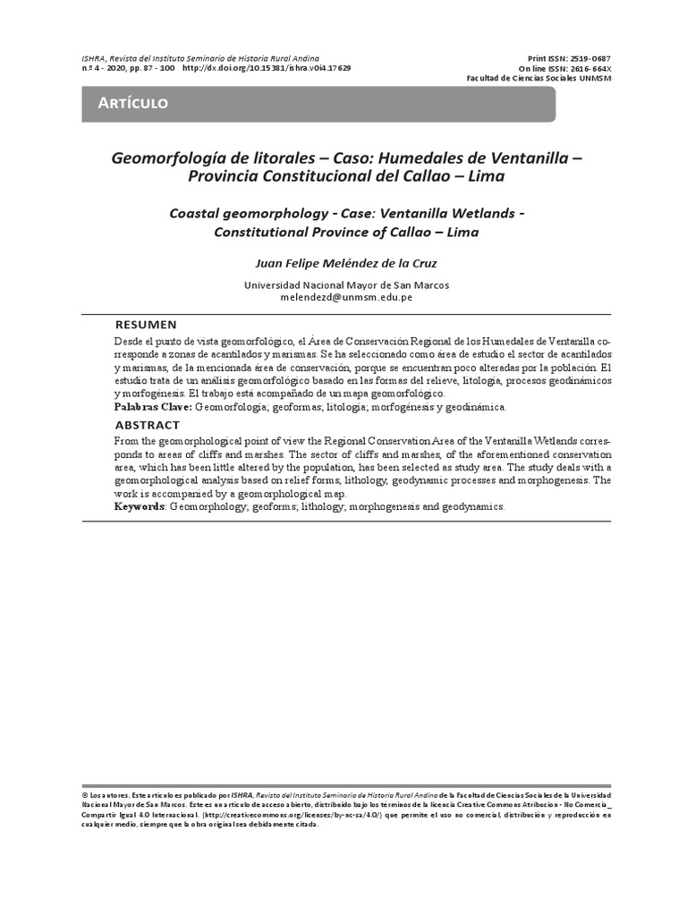 Nacional Mayor de San Marcos. Este es un artículo de acceso abierto, distribuido bajo los términos de la licencia Creative Commons Atribucion - No Comercia_