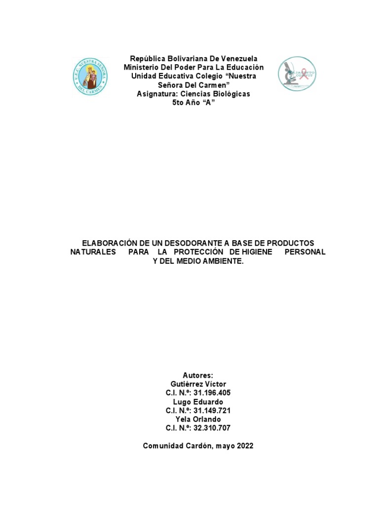 Mujica G. M. (2018), Elaborar un desodorante a base de productos