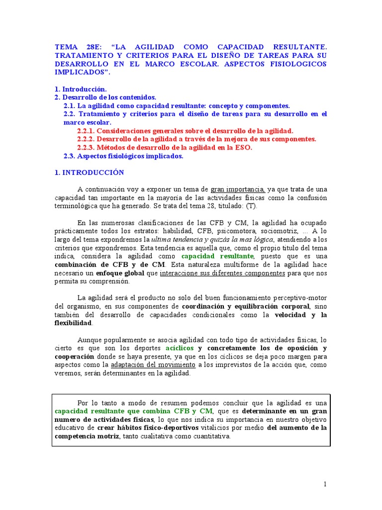 TEMA 28E: “LA AGILIDAD COMO CAPACIDAD RESULTANTE.