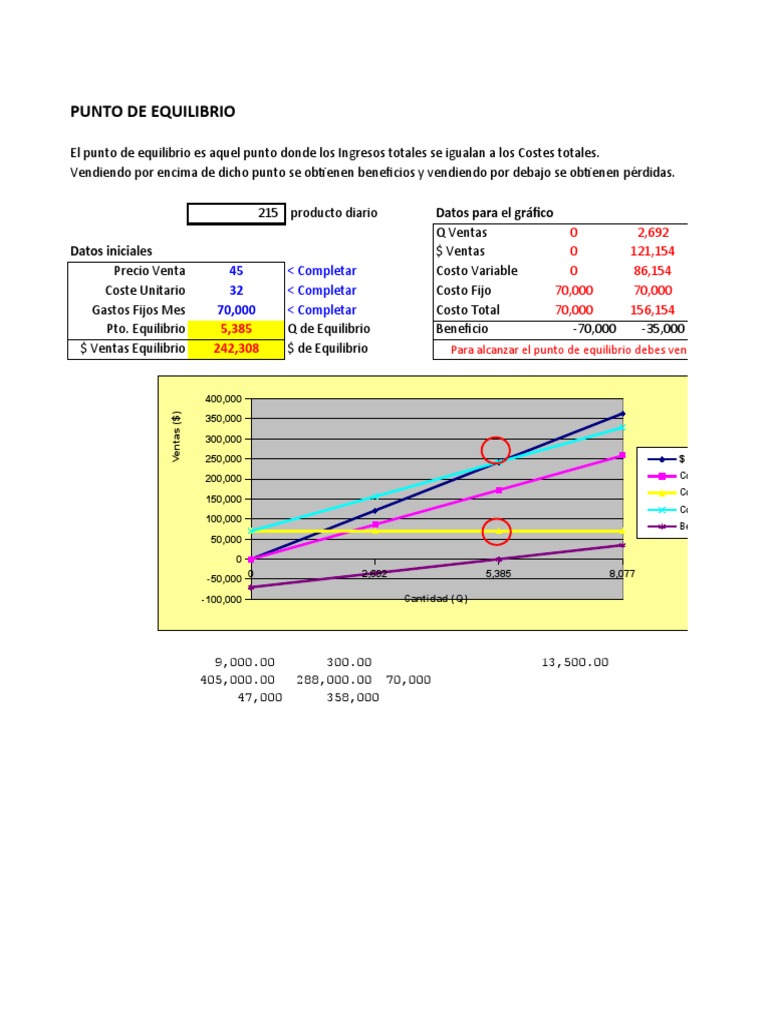 Pto. Equilibrio 5,385 Q de Equilibrio Beneficio -70,000 -35,000