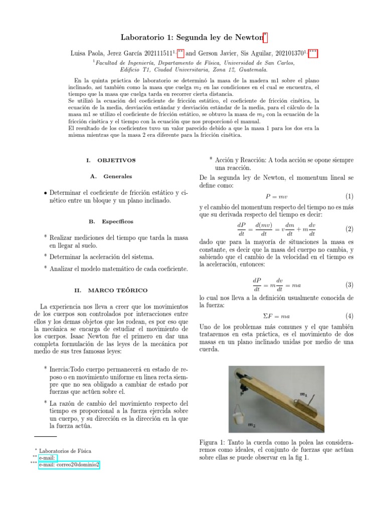 Laboratorio 1: Segunda ley de Newton*