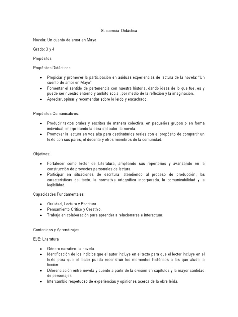 Se comenzará la clase leyendo los dos primeros capítulos de la novela “Un cuento de amor