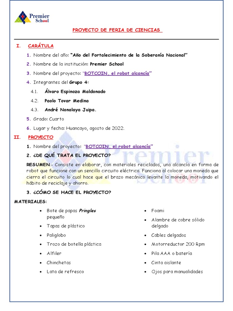 1. Nombre del proyecto: “BOTCOIN, el robot alcancía”