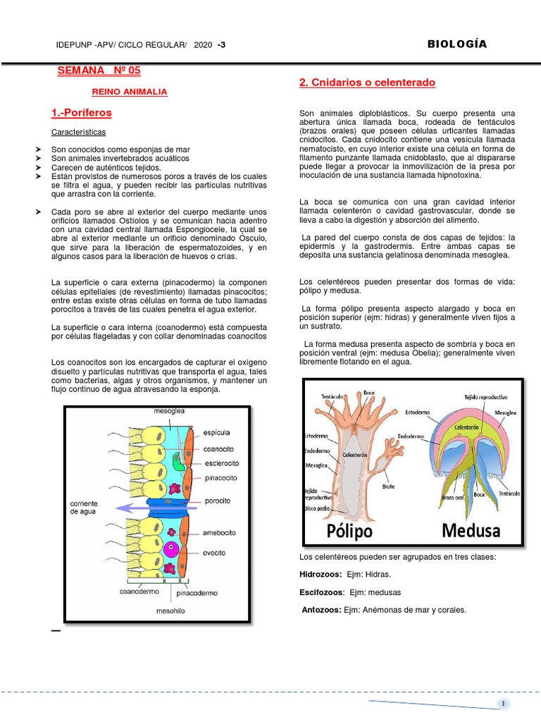 1.-Poríferos Son animales diploblásticos. Su cuerpo presenta una